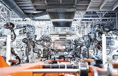 焊裝機器人在吉林長春中國第一汽車集團(tuán)有限公司焊裝車間內(nèi)焊接車身