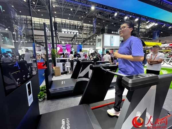 “我們這臺跑步機(jī)不僅能改變在跑步機(jī)上跑步的枯燥感,還能糾正身體的姿勢,改善跑步效果。”該展臺負(fù)責(zé)人表示,通過科技與運(yùn)動的結(jié)合,能夠讓消費(fèi)者更方便、更直觀地感受到科技魅力,樹立良好的運(yùn)動習(xí)慣。