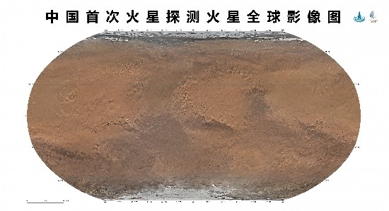 人民網(wǎng)北京4月24日電 (記者趙竹青、王震)記者從國(guó)家航天局獲悉,4月24日,在2023年“中國(guó)航天日”主場(chǎng)活動(dòng)啟動(dòng)儀式上,國(guó)家航天局和中國(guó)科學(xué)院聯(lián)合發(fā)布了中國(guó)首次火星探測(cè)火星全球影像圖。本次發(fā)布的影像圖為彩色,包括按照制圖標(biāo)準(zhǔn)分別制作的火星東西半球正射投影圖、魯賓遜投影圖和墨卡托投影加方位投影圖,空間分辨率為76米,將為開展火星探測(cè)工程和火星科學(xué)研究提供質(zhì)量更好的基礎(chǔ)底圖。天問(wèn)一號(hào)任務(wù)獲取的包括影像圖在內(nèi)的一批科學(xué)探測(cè)數(shù)據(jù),將為人類深入認(rèn)知火星作出中國(guó)貢獻(xiàn)。