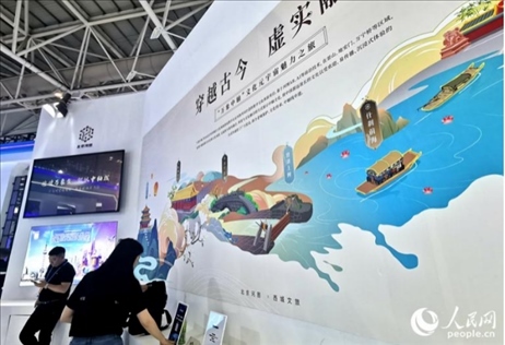 “我們對北京中軸線的場景進行了復刻,構筑了中軸線元宇宙,如果游客觀光北京中軸線上的打卡點,用手機掃描眼前的景色,就會出現(xiàn)現(xiàn)實與虛擬交織的場景,仿佛穿越古今,置身于千百年前的時空。”北京河圖公司工作人員陳頌在展會現(xiàn)場介紹說。