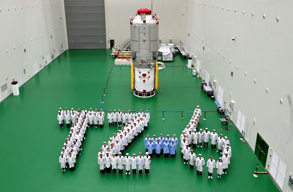天舟六號貨運(yùn)飛船八院試驗(yàn)隊(duì)和天舟六號推進(jìn)艙合影。(中國航天科技集團(tuán)八院供圖)