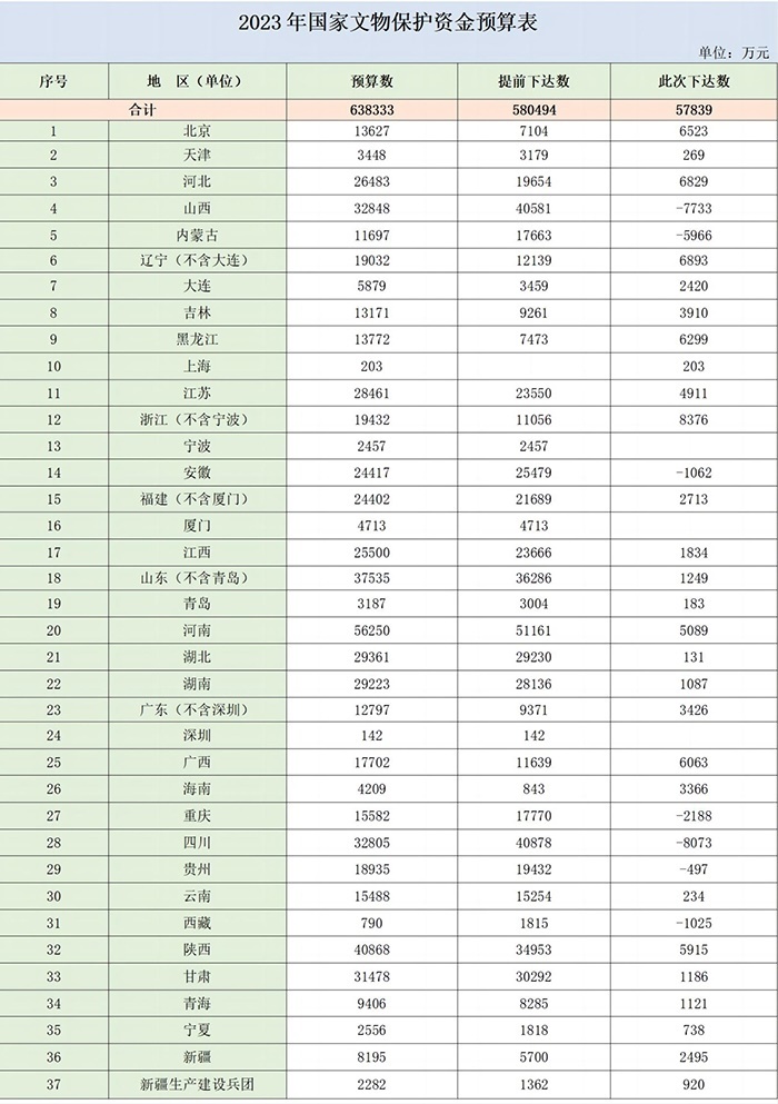 2023年國家文物保護資金預算表。圖片來源:財政部官網(wǎng)