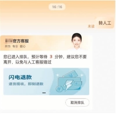 現(xiàn)實(shí)中,智能客服的出現(xiàn)的確提供了諸多便利,但當(dāng)智能客服的標(biāo)準(zhǔn)化應(yīng)答無(wú)法解決遇到的具體問(wèn)題時(shí),更多用戶便轉(zhuǎn)向人工客服。然而,人工客服的接通率較低。有網(wǎng)友反映,即便通過(guò)排隊(duì)接入人工客服,有時(shí)為了提交信息退出聊天窗口后,又需重新排隊(duì)進(jìn)入,而此時(shí),人工客服已換人,之前提出的問(wèn)題也需要重復(fù)表述。