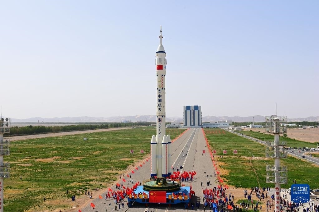5月22日,神舟十六號載人飛船與長征二號F遙十六運載火箭組合體在轉(zhuǎn)運途中。新華社發(fā)(汪江波 攝)