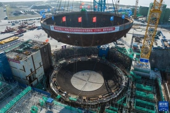 5月29日,在浙江省臺州市三門縣,三門核電二期工程4號機組核島鋼制安全殼底封頭順利吊裝就位。這是4號機組核島反應(yīng)堆廠房吊裝的首個大型模塊,標志著該廠房主體結(jié)構(gòu)施工開始。三門核電二期工程4號機組于3月22日開工,整個二期工程建成投產(chǎn)后,一、二期裝機總?cè)萘繉⑦_到500萬千瓦,年發(fā)電量預(yù)計可達到400億千瓦時。