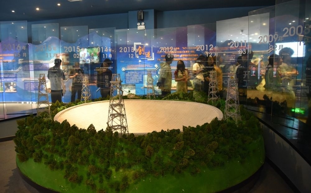人們?cè)谫F州省平塘縣參觀“中國天眼”模型(2023年6月6日攝)。新華社記者 駱飛 攝