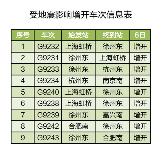 人民網(wǎng)北京8月6日電 (記者王連香)記者從中國(guó)鐵路上海局集團(tuán)有限公司獲悉,受8月6日山東省德州市平原縣發(fā)生5.5級(jí)地震影響,為確保列車運(yùn)行安全,鐵路部門計(jì)劃對(duì)途經(jīng)京滬高鐵部分列車采取限速、停運(yùn)等措施;同時(shí),根據(jù)旅客出行需要,計(jì)劃增開(kāi)途經(jīng)京滬高鐵長(zhǎng)三角管內(nèi)區(qū)段部分列車,滿足管內(nèi)旅客出行需要。截至當(dāng)日11時(shí)30分,計(jì)劃停運(yùn)92趟列車、增開(kāi)9趟列車。