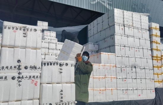 “車來(lái)嘍!”“往里倒,再倒,好,裝車!”盡管天氣寒冷,市場(chǎng)里卻是一片火熱的繁忙景象。從各地運(yùn)來(lái)的蔬菜陸續(xù)進(jìn)場(chǎng),工作人員手腳麻利地將成箱的蔬菜從大車上卸下再裝上小車,隨后,這些蔬菜將運(yùn)往寧夏各地小型批發(fā)市場(chǎng)和商超。“為了蔬菜在運(yùn)輸過(guò)程中不被凍壞,我們給蔬菜蓋了3層棉被,確實(shí)下了一番功夫?!鄙虘赳R伏珍說(shuō)。