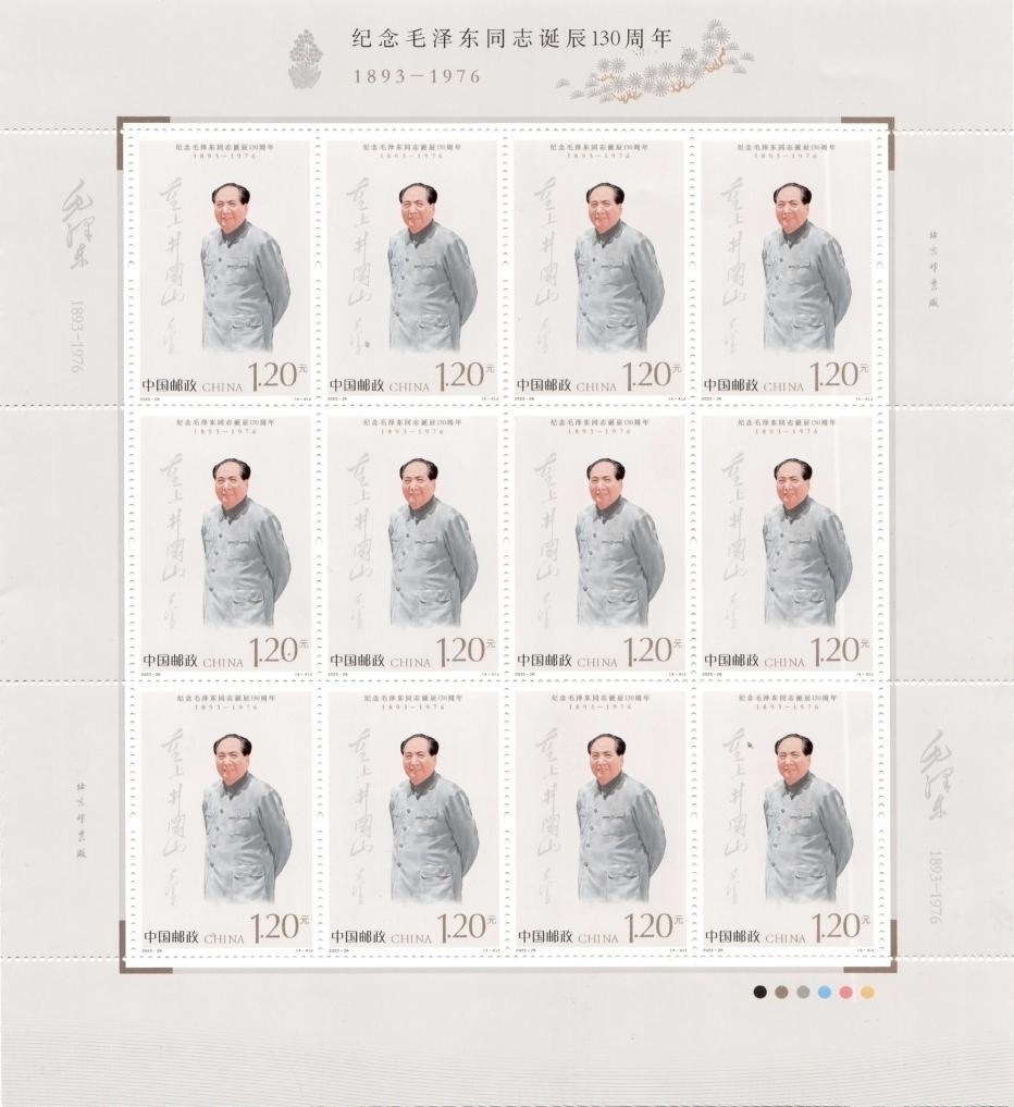 新華社北京12月25日電 中國郵政定于12月26日發(fā)行《紀念毛澤東同志誕辰130周年》紀念郵票1套4枚,郵票圖案名稱分別為堅持抗戰(zhàn)、建設十三陵水庫、胸懷天下、重上井岡山。