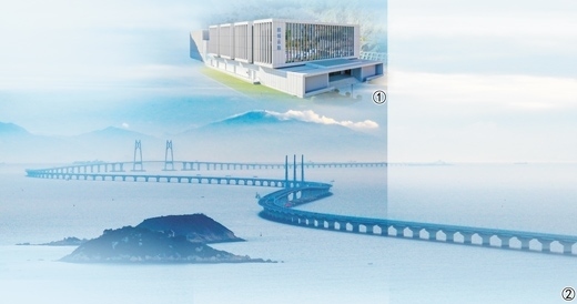 圖①:鵬城云腦大科學裝置。鵬城實驗室供圖 圖②:晨曦中的港珠澳大橋。新華社記者 劉大偉攝