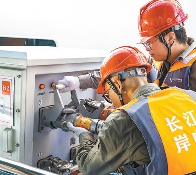 三峽壩區(qū),豐枯水期水位相差幾十米,船若泊在江心錨地,與岸上供電設(shè)施有距離?!盀榻鉀Q‘高低’和‘遠(yuǎn)近’問題,我們創(chuàng)新研發(fā)了10千伏電纜收放技術(shù)和充電躉船,能隨水位變化自動收放纜線,或行駛到江心為船舶供電。”李興衡介紹,公司還建成岸電云網(wǎng)服務(wù)平臺,為船舶提供統(tǒng)一結(jié)算、移動支付等便捷服務(wù)。