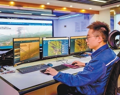 深圳供電局工作人員運(yùn)用遠(yuǎn)程監(jiān)控系統(tǒng),查看線路運(yùn)行情況。黃海鵬攝