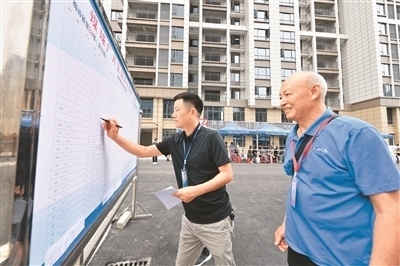 近年來,湖北省襄陽市保康縣持續(xù)改善城市人居環(huán)境、提升城市功能與品位,讓群眾住有所居、安居宜居的夢想不斷成為美好現(xiàn)實。圖為保康縣新型城鎮(zhèn)化項目國投·梅嶺新居小區(qū)開展分房選房工作時,工作人員在填寫房源分配信息。楊 韜攝(人民視覺)