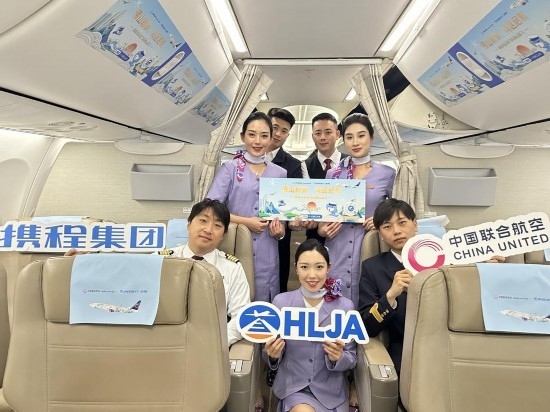 當日,飛抵佛山的“攜程號”是中聯(lián)航彩繪機隊的第15位成員,在客艙內(nèi),身著全新制服的乘務組精心策劃了豐富的客艙活動并為首航旅客分發(fā)包含“攜程號”創(chuàng)意來源“千里江山圖”中的山峰、攜程吉祥物等元素的紀念品。此次首航的旅客們,也是佛山機場新候機樓的首批體驗者,在一片歡聲笑語中,從嶄新的航站樓出發(fā),開始他們新的旅程。