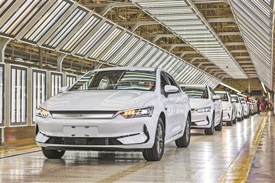 安徽省合肥市長(zhǎng)豐縣合肥比亞迪汽車廠區(qū),新能源汽車整齊下線。長(zhǎng)豐縣積極發(fā)展戰(zhàn)略性新興產(chǎn)業(yè),新能源汽車產(chǎn)業(yè)集群不斷壯大。