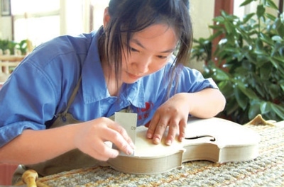 陳鳳軍身后的墻上,懸掛著一幅世界著名制琴大師斯特拉迪瓦里所制作的老琴圖片。閑暇時,他總會抬頭凝視,仔細研究它的每一處細節(jié)?!耙话迅纫话押茫銮偈怯肋h學不完的”,如今他已經斬獲了多項國際制琴比賽專業(yè)大獎。