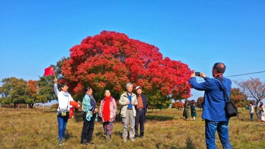 五角楓紅了,各地游客蜂擁而至。梁永峰 攝