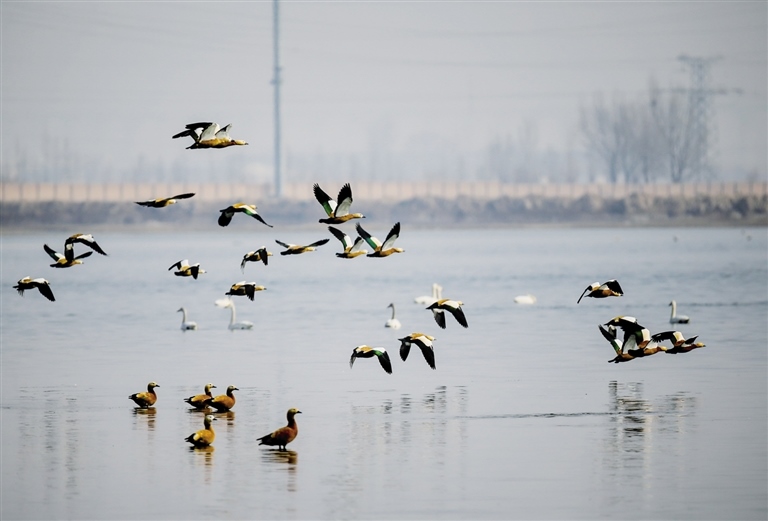 土默特左旗森林公安局副局長(zhǎng)王強(qiáng)告訴記者,隨著生態(tài)環(huán)境的日益改善,海流水庫(kù)已成為候鳥(niǎo)遷徙途中的重要棲息“驛站”,每年春秋兩季在海流水庫(kù)過(guò)境的候鳥(niǎo)高達(dá)百萬(wàn)只,種類(lèi)涉及天鵝、遺鷗、大雁、蒼鷺等十余種,其中不乏國(guó)家一、二級(jí)重點(diǎn)保護(hù)動(dòng)物。更可喜的是,現(xiàn)在海流水庫(kù)已經(jīng)有赤麻鴨長(zhǎng)期駐留。