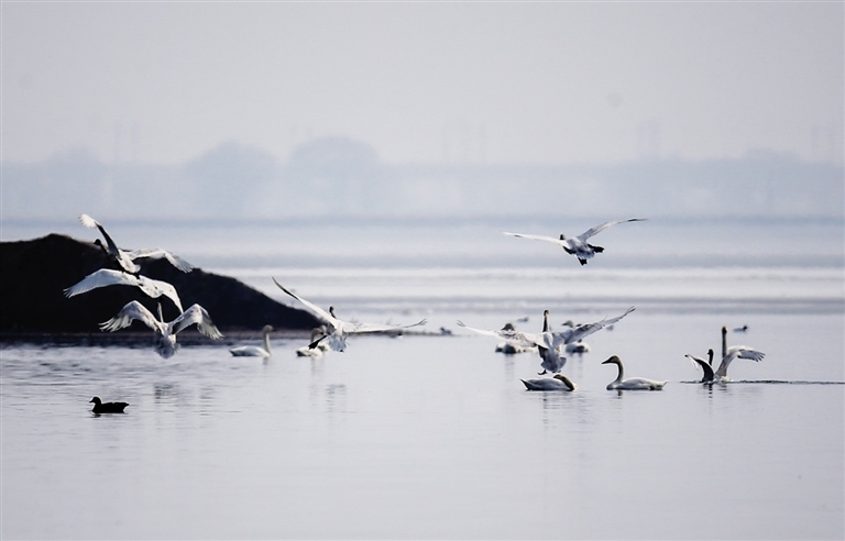 “現(xiàn)在湖面上的候鳥(niǎo)也就1萬(wàn)多只,等到4月份的時(shí)候,候鳥(niǎo)才會(huì)大量歸來(lái),屆時(shí)湖面上將出現(xiàn)4~5萬(wàn)只候鳥(niǎo)集聚的畫(huà)面,很是壯觀(guān)。”王強(qiáng)每每說(shuō)起候鳥(niǎo)都很感慨,他說(shuō),隨著環(huán)境變好,候鳥(niǎo)越來(lái)越多,去年更是首次出現(xiàn)了紅腿鶴。為了保護(hù)候鳥(niǎo)安全過(guò)境,他們從2月中旬開(kāi)始24小時(shí)不間斷巡視,并走街串戶(hù)進(jìn)行保護(hù)野生動(dòng)物的宣傳,突擊檢查轄區(qū)內(nèi)餐飲企業(yè),確保不會(huì)出現(xiàn)濫食野生動(dòng)物的現(xiàn)象。同時(shí),森林公安部門(mén)還在網(wǎng)上排查,嚴(yán)打網(wǎng)上交易野生動(dòng)物行為。