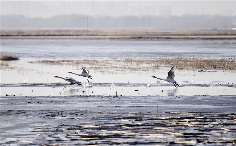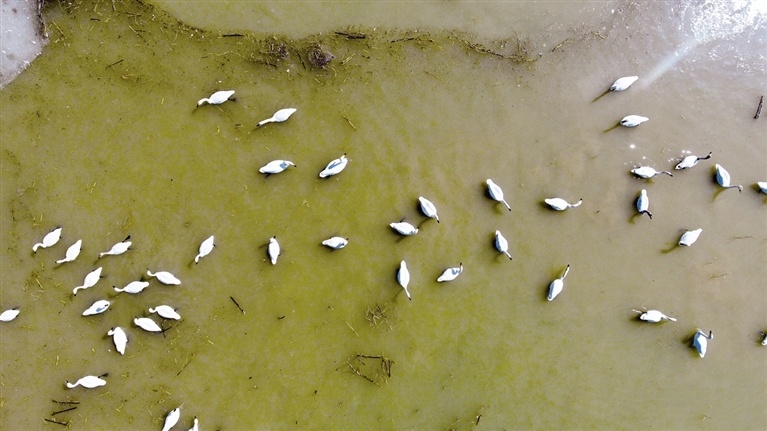 天鵝“組團(tuán)”落腳