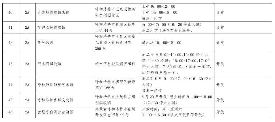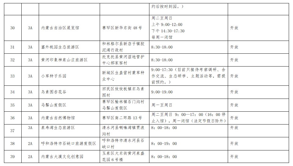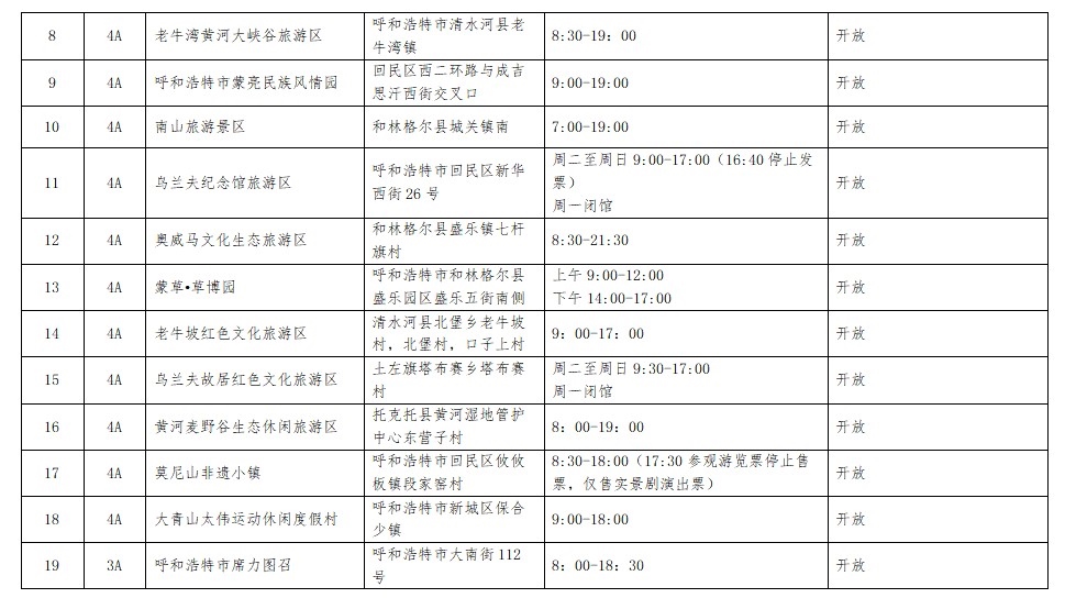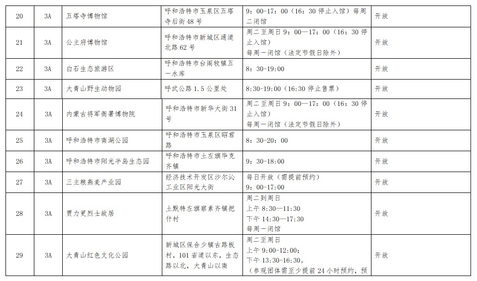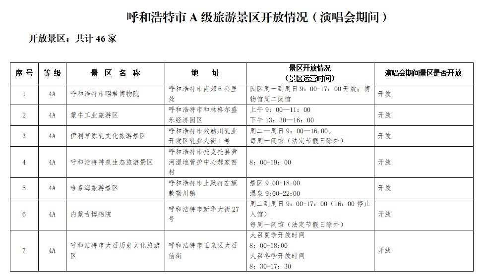呼和浩特市(演唱會(huì)期間)A級(jí)旅游景區(qū)開(kāi)放情況早知道