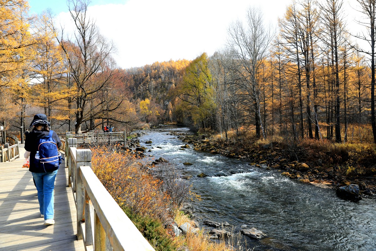 9月29日,游客在內(nèi)蒙古阿爾山國(guó)家森林公園三潭峽欣賞秋景 北疆新聞?dòng)浾?張楊攝影