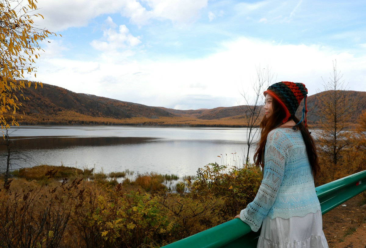 9月29日,游客在內(nèi)蒙古阿爾山國(guó)家森林公園烏蘇浪子湖邊打卡 北疆新聞?dòng)浾?張楊攝影
