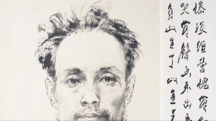 與病重時疲憊的狀態(tài)截然不同,王子武在畫作中刻畫自己的形象精神飽滿,飛揚(yáng)的發(fā)絲充滿朝氣。畫作《子武自寫》中,人物眼神堅定,造型簡潔、穩(wěn)定,充滿力量感。整幅畫作表現(xiàn)了王子武將生命奉獻(xiàn)給繪畫的自信和決心。