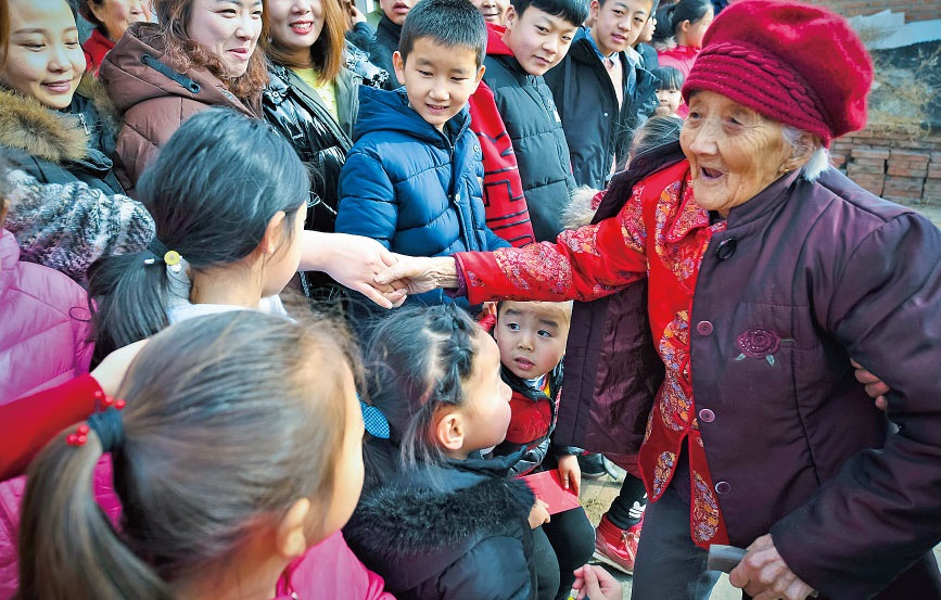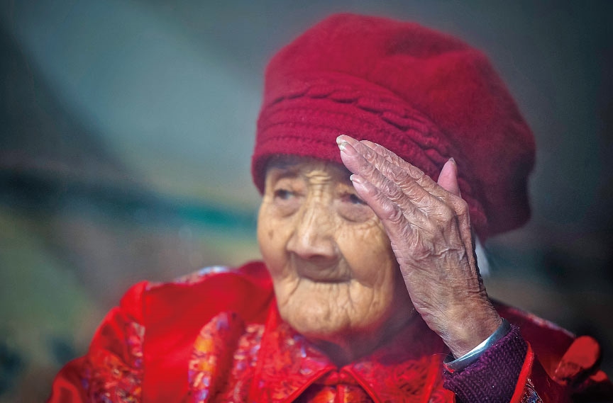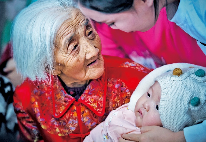 老人的兒孫們?nèi)缃翊蠖喽荚谕鈱W(xué)習(xí)、工作、做生意,大家族的成員日子都過得紅紅火火。對(duì)于老人來說,子孫滿堂是最幸福的事;對(duì)于孩子們來說,老人健康長(zhǎng)壽,也是他們最大的愿望。五世同堂,98口人,百歲老人賈先女露出幸福的笑容。