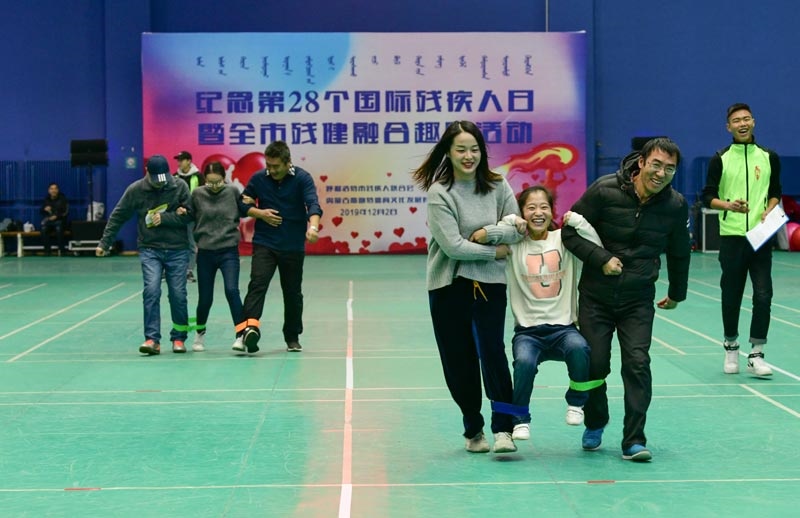 12月 2日,在呼和浩特市全民健身中心綜合體育館,參加殘健融合趣味活動(dòng)的隊(duì)員們正在進(jìn)行比賽。當(dāng)日,由呼和浩特市殘疾人聯(lián)合會(huì)主辦,以“提高殘疾人的參與度和領(lǐng)導(dǎo)力”為主題,紀(jì)念第28個(gè)國際殘疾人日暨全市殘健融合趣味活動(dòng)在該館舉行?;顒?dòng)旨在進(jìn)一步發(fā)展殘疾人事業(yè),豐富殘疾人文化體育生活,推動(dòng)殘疾人文化體育事業(yè)健康發(fā)展。(內(nèi)蒙古日?qǐng)?bào)社融媒體記者 懷特烏勒斯攝)