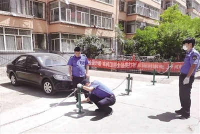 當(dāng)日,記者來到該小區(qū)看到,一些住戶在公共區(qū)域私自打地樁,用鐵鏈圈出簡易的“私人停車場”,占地100多平方米。居民劉先生告訴記者,小區(qū)內(nèi)的公共停車位本來就緊張,可就在幾個月前,突然有人私自安了地樁連起了鎖鏈,建了個“私人停車場”,占用的全是小區(qū)公共用地。居民多次找圈地的住戶溝通,要求他們拆除,可對方態(tài)度惡劣,拒不拆除。