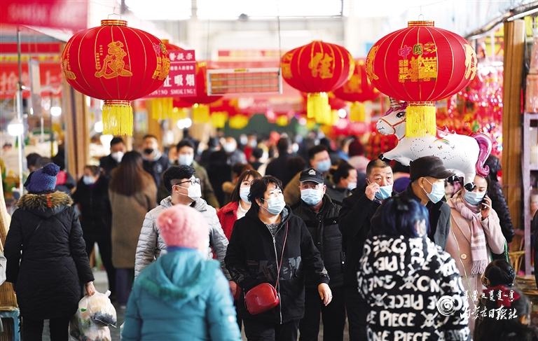 2月7日,呼和浩特市民在保全莊農(nóng)貿(mào)市場購買年貨。春節(jié)日益臨近,首府超市、市場內(nèi)各類年貨琳瑯滿目,前往采購年貨的市民絡(luò)繹不絕,年貨銷售迎來高峰。據(jù)了解,呼和浩特市肉蛋果蔬、米面糧油等生活必需品貨源充足、品種豐富,滿足廣大市民的消費需求。內(nèi)蒙古日報社融媒體記者 孟和朝魯 攝
