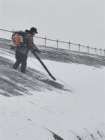“趕緊!趕緊!這邊雪太厚了,再不清這個(gè)棚就要塌了……”紅星街道大棚種植村,20多厘米的積雪威脅著菜農(nóng)的經(jīng)濟(jì)命脈,街居干部全員上陣,小心翼翼蝸行棚梁,吹雪機(jī)吹走一處處積雪,保障了種植戶農(nóng)業(yè)生產(chǎn)安全。