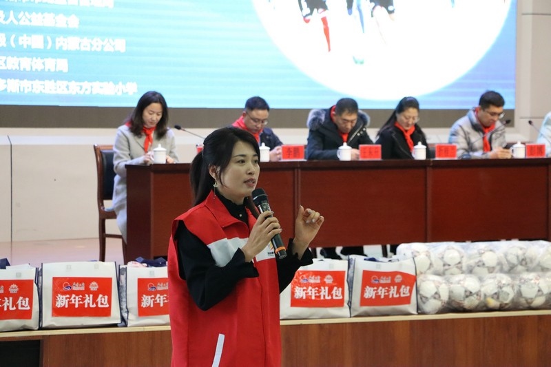鄂爾多斯市市場(chǎng)監(jiān)督管理局副局長(zhǎng)折桂蘭在公益活動(dòng)上致辭,希望同學(xué)們不要單一地關(guān)注學(xué)習(xí),而要德、智、體、美全面發(fā)展,提升綜合能力,同時(shí)用優(yōu)異的成績(jī)來回報(bào)每一個(gè)愛心人士的無私奉獻(xiàn)與幫助。也希望同學(xué)們分配好時(shí)間,能夠熱愛足球,熱愛自已感興趣的運(yùn)動(dòng)、愛好,這會(huì)讓生活更加多姿多彩,也希望同學(xué)們今后能多方面為國(guó)家貢獻(xiàn)自己的力量,成為各行業(yè)里的優(yōu)秀人才。