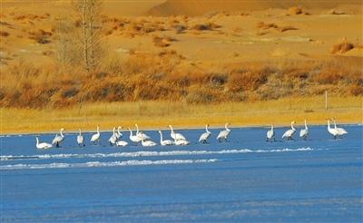3月的鄂托克草原春光明媚、萬物復(fù)蘇。黃河一級支流——都思圖河兩岸,風(fēng)吹草偃間,珍禽掠影過,灰鶴、赤麻鴨、天鵝、豆雁等各種鳥類在河中嬉戲打鬧,一幅人與自然和諧共生的美麗生態(tài)畫卷徐徐呈現(xiàn)。