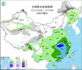 圖2 全國降水量預(yù)報圖(3月24日08時-25日08時)