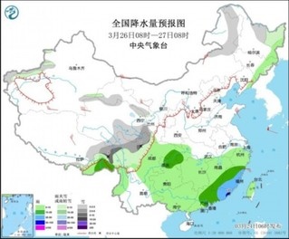 圖4 全國降水量預(yù)報圖(3月26日08時-27日08時)
