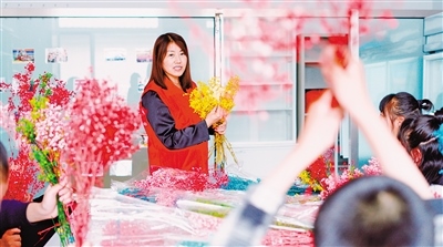 杜倩給“愛心之家”的孩子們上插花課
