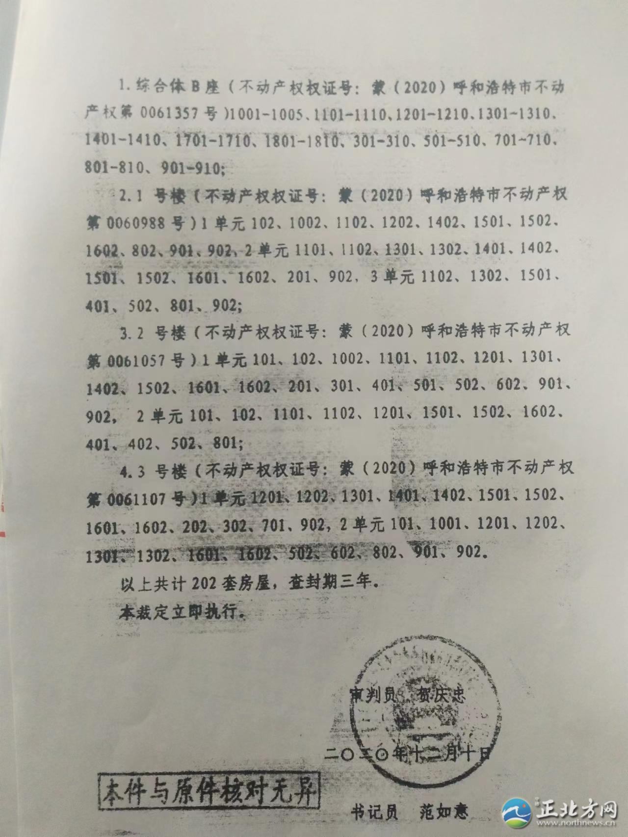 “我們小區(qū)2019年交房,2021年11月份,小區(qū)終于能辦房本了。可是在辦理房本的過程中,我們得知小區(qū)住宅樓100多套房子被多個法院查封了,小區(qū)辦房本的事也就停了下來。現(xiàn)在,我們找開發(fā)商內(nèi)蒙古世華房地產(chǎn)開發(fā)有限責(zé)任公司(以下簡稱世華房地產(chǎn)公司)問詢?yōu)槭裁捶课荼徊榉?,何時能夠解封,可是開發(fā)商躲著不見我們!這事究竟歸誰管呢?”近日,呼和浩特市玉泉區(qū)上國名都業(yè)主向北方新報正北方網(wǎng)記者反映。
