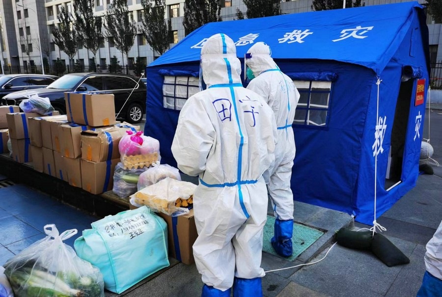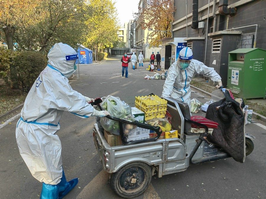 即使單元出現(xiàn)陽性病例,田宇依舊穿著防護服,佩戴好口罩,第一時間將物資運送到位。有時物資集中配送,田宇需要往返多次搬運大量的物資。有時鄰居填錯地址,還需要到別的居民樓幫忙找尋。但她從未有過一句怨言,面對鄰居們的感謝和贊揚,她總是憨厚地和大家說“不要客氣”。當(dāng)鄰居們因為小區(qū)的封控管理或物資短缺產(chǎn)生焦慮或不滿時,她也會在第一時間解釋說明,疏導(dǎo)大家的情緒。