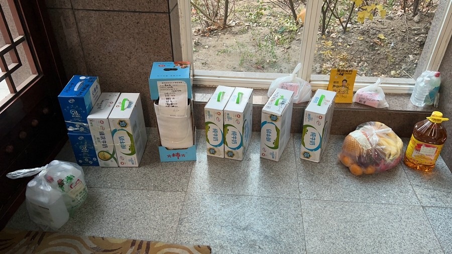 為了避免鄰居們錯拿或少拿物資,每天把物資搬運回單元門廳后,都會一一拍照標(biāo)記戶號后發(fā)在居民微信群里,暖心地提醒鄰居們領(lǐng)取物資時一定要做好防護,消殺到位。