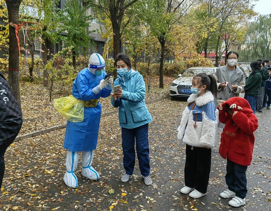 核酸檢測時,她認(rèn)真檢查居民的抗原檢測結(jié)果,掃碼錄入信息,幫助使用手機不熟練或行動不便的老人快速完成檢測。