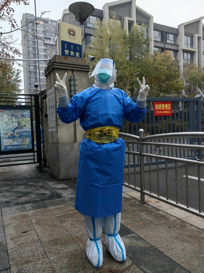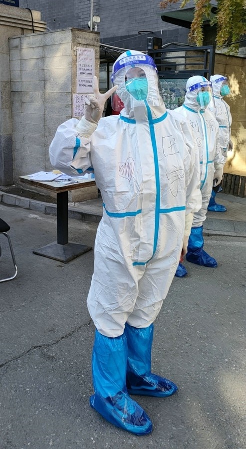 當(dāng)她所居住的樓棟隔壁單元出現(xiàn)陽性病例后,前期一同工作的志愿者無法繼續(xù)上崗,田宇毅然承擔(dān)起整棟樓的工作量。