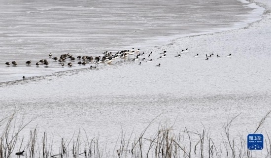 各種鳥類在北京園博湖棲息(2月14日攝)。