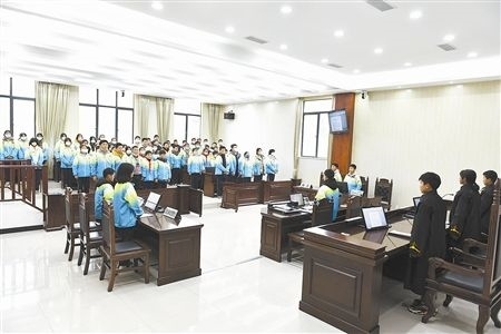 伴隨著“小法官”手中的法槌落下,一場庭審體驗活動正式開始。在法庭干警的指導(dǎo)下,8名學(xué)生“一秒入戲”,從宣讀法庭紀(jì)律、核對當(dāng)事人身份,到法庭調(diào)查、舉證質(zhì)證、法庭辯論,整個庭審程序嚴(yán)謹(jǐn)規(guī)范、秩序井然。