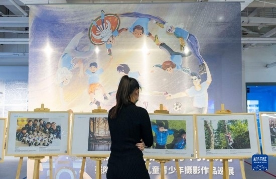 2月22日,一名女子在“融合無(wú)障愛(ài)、攜手向未來(lái)”殘障融合主題兒童青少年攝影作品巡展上參觀。
