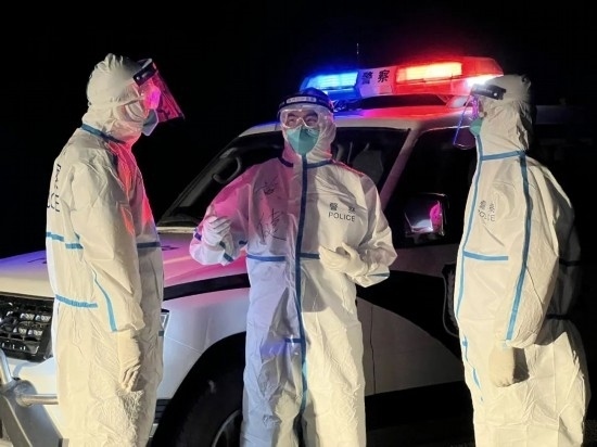 圖為疫情期間,黃健現(xiàn)場帶領(lǐng)民警開展防疫查驗工作