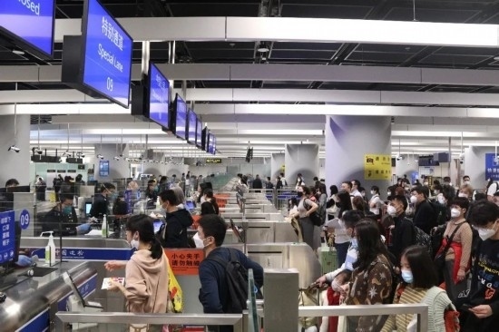 圖為西九龍站口岸旅客通關(guān)現(xiàn)場。