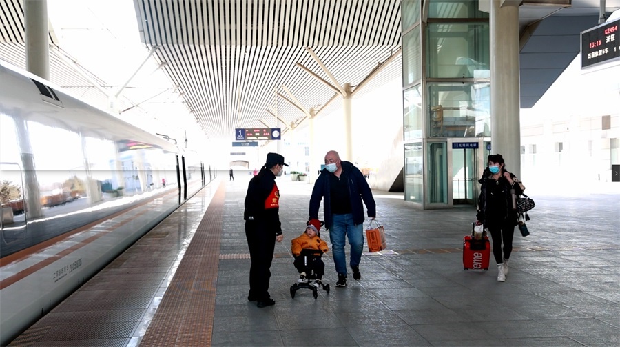 “旅客們出門在外,難免遇到一些問題,我做的雖然不是驚天動(dòng)地的大事兒,但只要能幫到別人,我就覺得很開心?!?023年1月,正在站臺(tái)巡視的陳甜甜發(fā)現(xiàn)一位手拿拐杖的旅客顫巍巍地走近列車,她主動(dòng)上前詢問。原來,這位旅客是一名盲人,獨(dú)自一人準(zhǔn)備從北京乘車回包頭。為更好地照顧這位特殊的旅客,陳甜甜帶著他尋找座位、幫他放置行李。乘車途中,陳甜甜還細(xì)心地請(qǐng)男乘務(wù)員同志帶他如廁方便,讓對(duì)方感到無微不至的關(guān)懷。