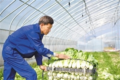 江西省上饒市鉛山縣通過“龍頭企業(yè)+村集體經濟合作社+農戶”模式,建設萬畝蔬菜基地,促進農民增收。圖為3月6日,村民在鉛山縣永平鎮(zhèn)缸瓦窯萬畝蔬菜基地采收蔬菜。 丁銘華攝(人民視覺)